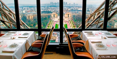 Nhiều người cho rằng đây là nhà hàng lãng mạn nhất ở Paris. Đến với nhà hàng sang trọng bậc nhất này, khách hàng không chỉ được thưởng thức những món ăn ngon tuyệt do chính tay đầu bếp nổi tiếng Alain Ducasse chế biến, mà còn được ngắm toàn cảnh Paris ở độ cao 125m. Ở đây, thực khách sẽ tìm được nhiều phong cách khác nhau phù hợp sở thích của mình. Tại đây có thể chứa được khoảng 100 người với thực đơn cho các bữa ăn trưa trung bình 75 euro và bữa tối là từ 155 đến 190 euro.